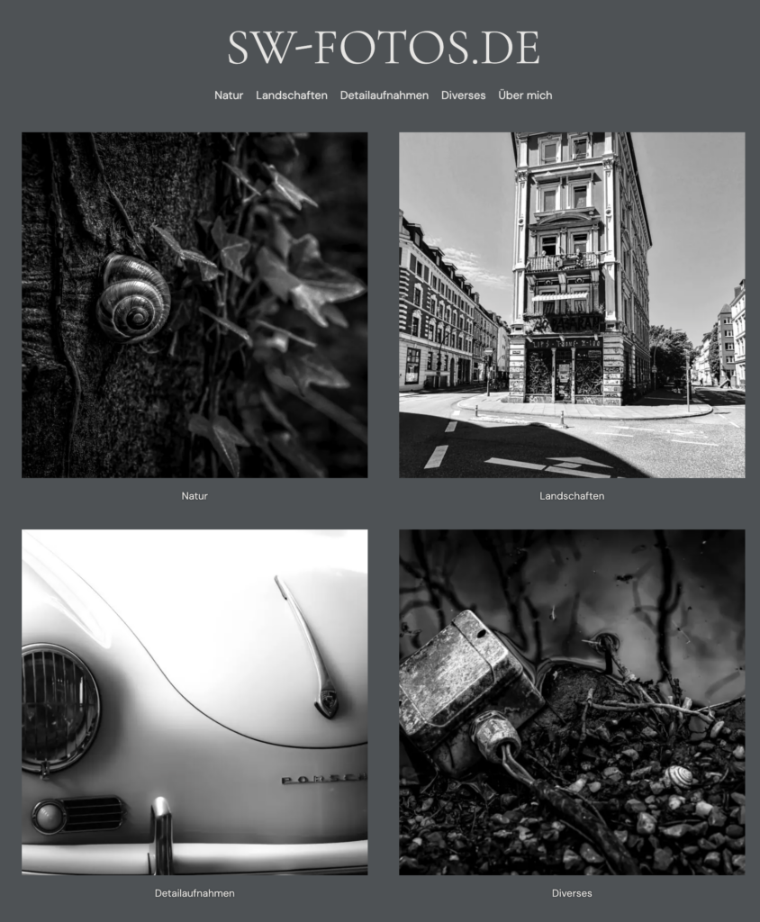 Seit dem 27. März gibt es eine weiteren Webseite von mir. Mit sw-fotos.de erfülle ich mir einen persönlichen Wunsch nach einer Portfolio-Seite, auf der ich meine Schwarz-Weiß-Fotos zeigen kann, und zwar nur die in Schwarz-Weiß! Sicher, Bilder gehören ausgedruckt und an die Wand. Doch die freien Wände in unserer Wohnung sind begrenzt. Ich tu mich schwer mit dem Gedanken neue Bilder hinzuhängen und die „alten“ Fotos mit Rahmen zu archivieren. So entstand der Wunsch nach einer eigenen Portfolio-Seite. Ich würde mich freuen, wenn ihr mal vorbeischaut und auch jeder Kommentar wird gelesen, versprochen!